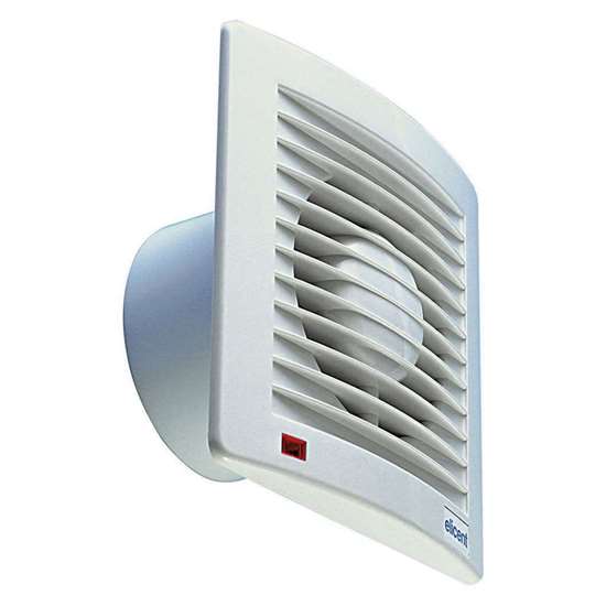 Bad/WC-Ventilator E-Style 150T mit mechanischer Verschlussklappe und Nachlauf.