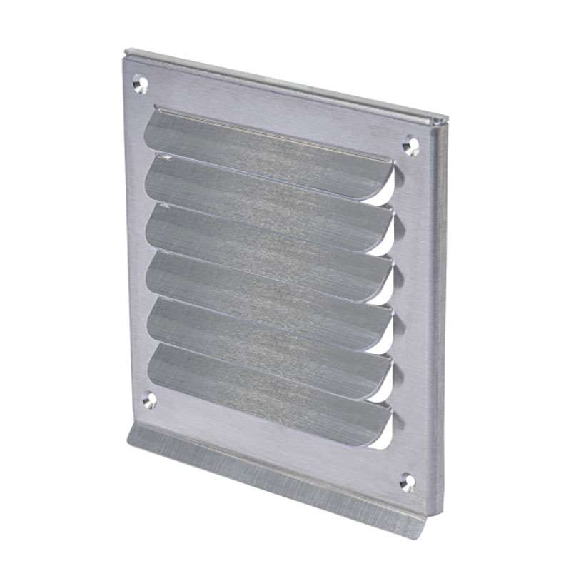 Grille pare pluie en aluminium, rejet d'eau, sans Manchon et moustiquaire. 600 x 600 mm. 70% coupe transversale libre. Avec barrette intermédiaire.