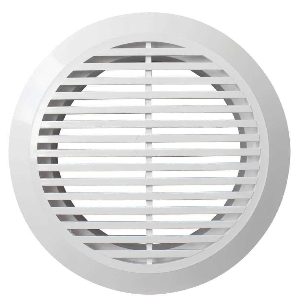 Griglia di ventilazione in plastica 12RKF, bianco, rotonda Ø 120 mm Diametro esterno 165mm. Con flangia di montaggio