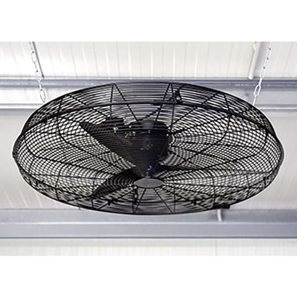 Ventilatore da soffitto con griglia di protezione per montaggio a 20m altezza sala, IP20.